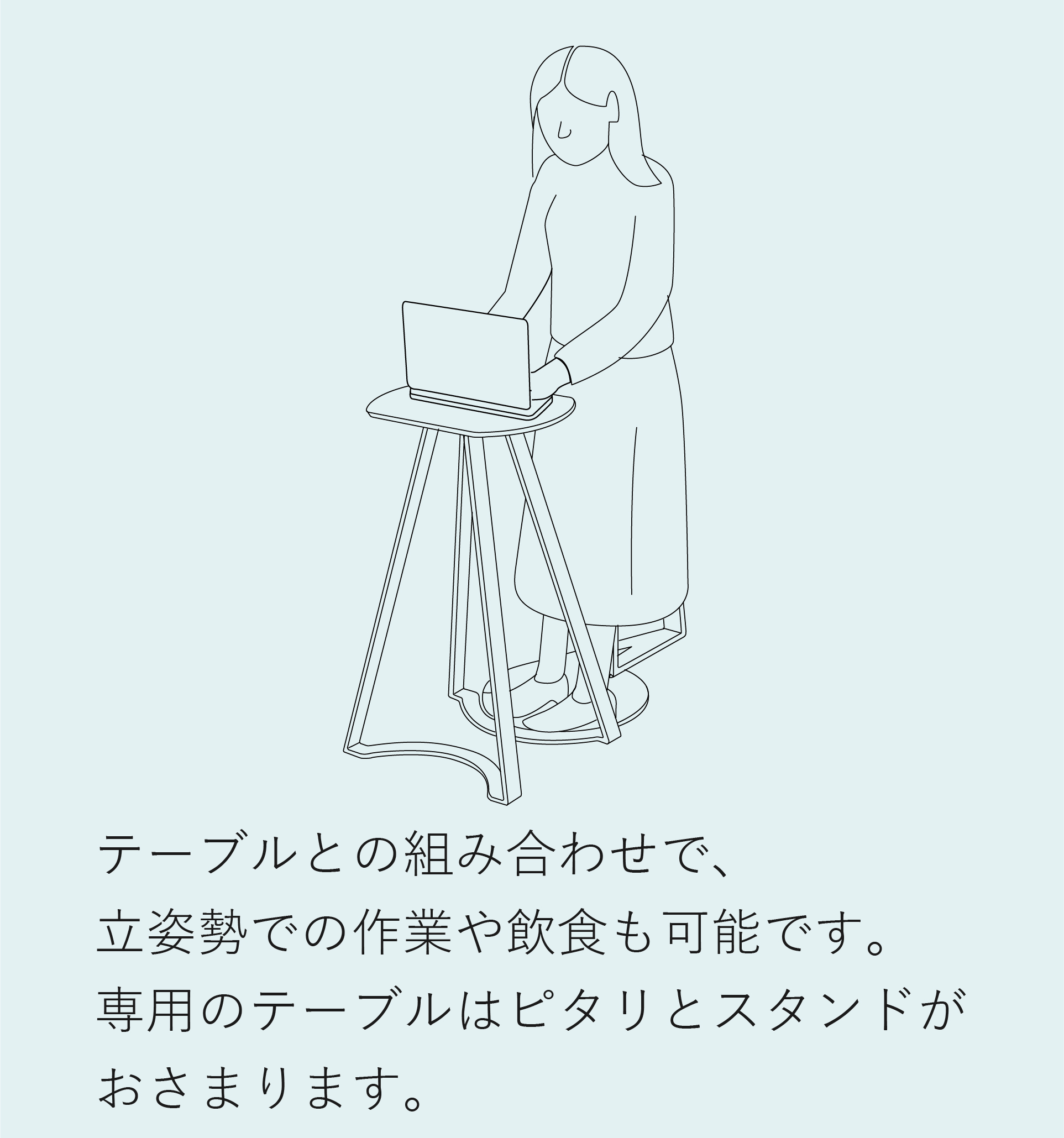 立ってPC作業や会議に最適なテーブルです。