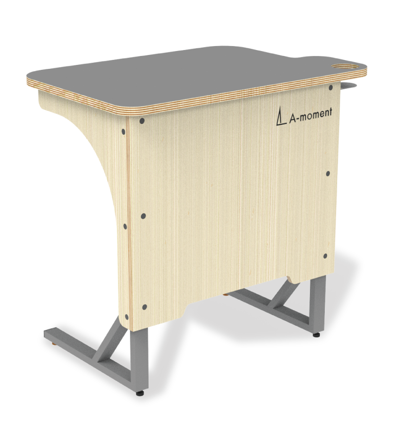 パーテーションチェア専用の出入りがしやすいテーブルです。樹脂シートを貼った硬い天板、ドリンクホルダーなど、安定して作業がしやすい工夫を盛り込んでいます。
