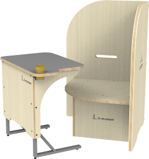 - 新製品「パーテーションチェア(partition chair)」の販売を開始しました。 まわりの環境を適度に遮って、集中して作業ができるパーテーション付きのチェア、テーブルのセットです。