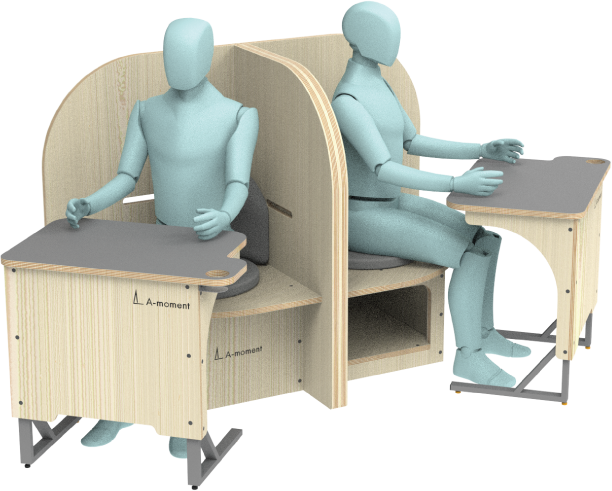 イスとパーテーションが一体になった製品です。